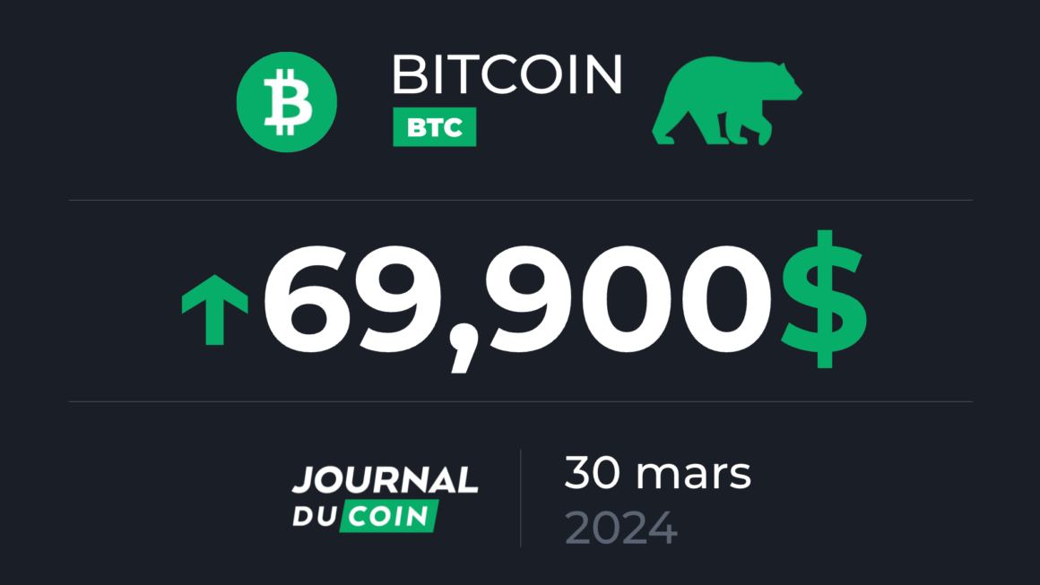En cette fin de semaine, le cours du Bitcoin continue d’osciller autour des 70 000 $. Les vendeurs et les acheteurs se neutralisent actuellement, et le cours stagne en 24 heures :