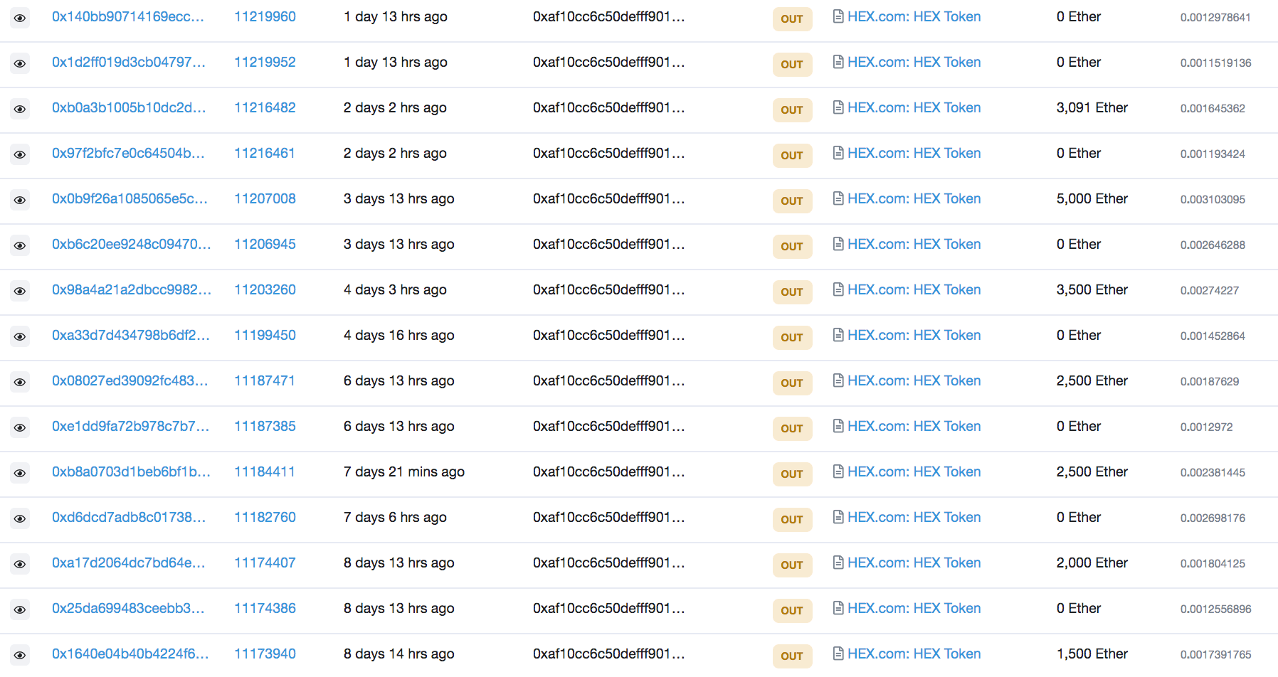 Au cours de la dernière semaine, un internaute anonyme a déposé l’équivalent de 20 000 ETH sur la plateforme HEX à travers 7 transactions distinctes.