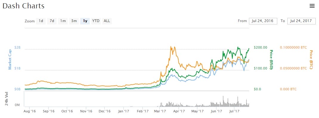 Cette hausse est sûrement due à l’acceptation du portefeuille DASH sur l’AppleStore à la mi-juillet, suite à un refus initial en août de l’année passée.