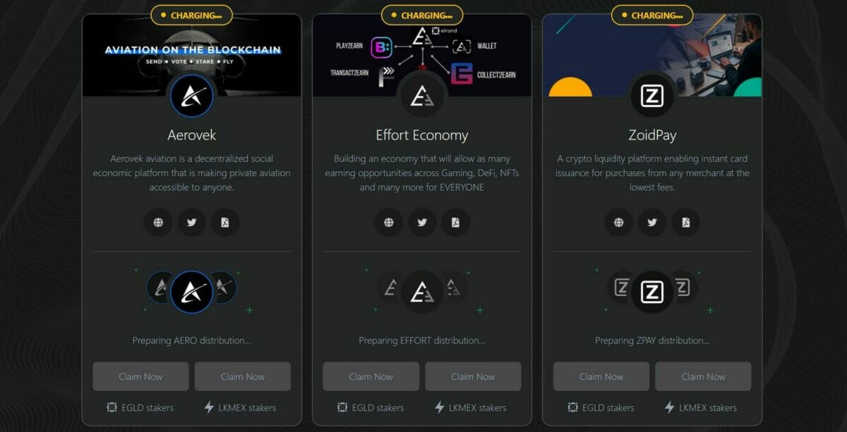 Comme cité ci-dessus, les projets partenaires vont distribuer régulièrement sur 2 ans : 10% de la supply totale de leur token, exclusivement aux stakers d’EGLD et de Lp MEX/LKMEX.