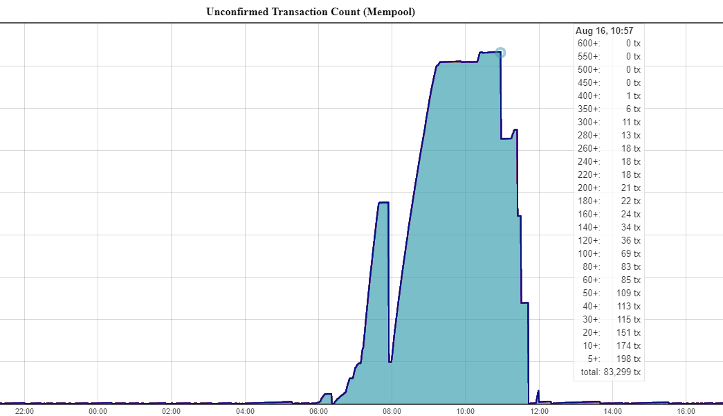 Le matin du 16 août, le réseau Bitcoin Cash semblait subir une attaque spam, car le nombre de transactions non confirmées a augmenté de quelques centaines à plus de 80 000 en quelques heures.