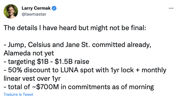 Pour rassurer les marchés et garantir son arrimage au dollar, la Luna Foundation Guard qui gère l’UST n’avait d’ailleurs pas lésiné sur les moyens : levée de fonds d’1 milliard de dollars, achat d’1.5 milliard de dollars en bitcoins il y a à peine quelques jours… Tout semblait aller pour le mieux dans le meilleur des mondes.