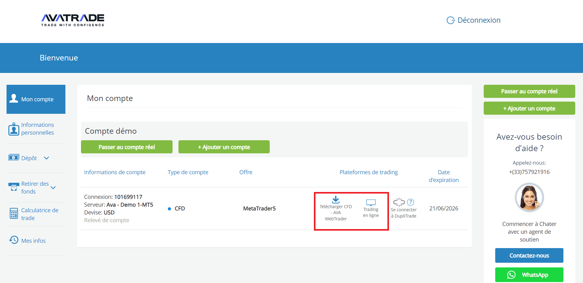 Que ce soit sur les versions mobile, ordinateur ou web, un compte de démo est accessible gratuitement et permet de tester la plateforme sans aucun risque. Une fois connecté, vous pouvez passer d’une version à l’autre à tout instant.