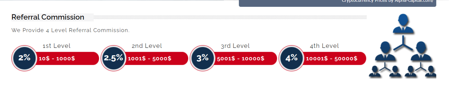 S’agissant de la proposition de valeur, le généraliste le dispute au nébuleux, ça parle d’ASICS, de CPU mining à travers un système décentralisé sur le web, le tout étant supposé produire plus ou moins aléatoirement du Bitcoin sonnant et trébuchant dans le cadre de différents plans auxquels il convient de souscrire…bref, flou plus que fou. Premier drapeau rouge avec l’irruption du petit schéma pyramidal d’affiliation qui va bien.