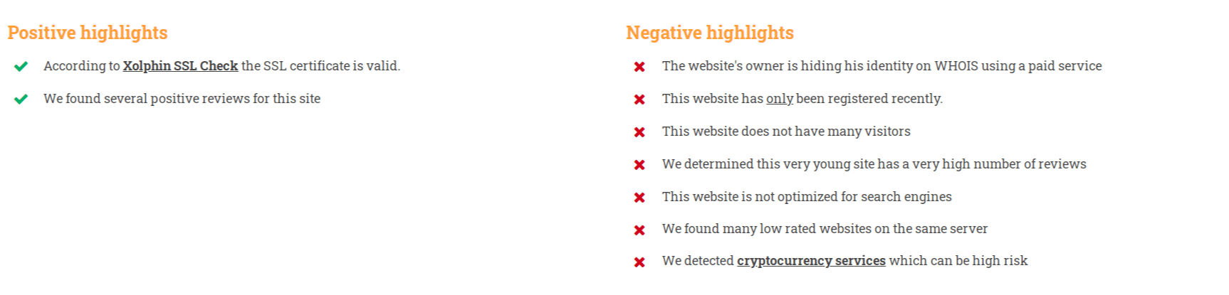Sans même parler de l’absence d’équipe identifiée (ils doivent jouer au foot dans le terrain vague derrière le siège social) on ira aussi pour la forme passer le site à la moulinette du site Scam Adviser, pour un résultat à l’image de la météo à Manchester : piteux.