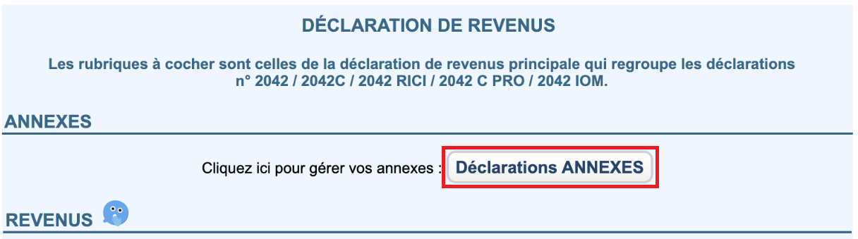 Dans votre espace impots.gouv.fr, accédez aux « Déclarations ANNEXES » et sélectionnez le formulaire 3916 – 3916-bis.