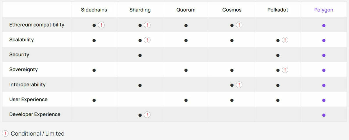 Polygon réunit le meilleur des fonctionnalités présentes sur les solutions de scalabilité existantes pour Ethereum.