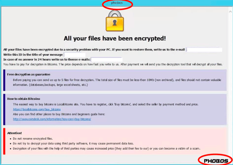 Phobos est le petit frère de Dharma, cousin de CrySiS. Il chiffre vos données en utilisant un protocole de cryptographie asymétrique.
