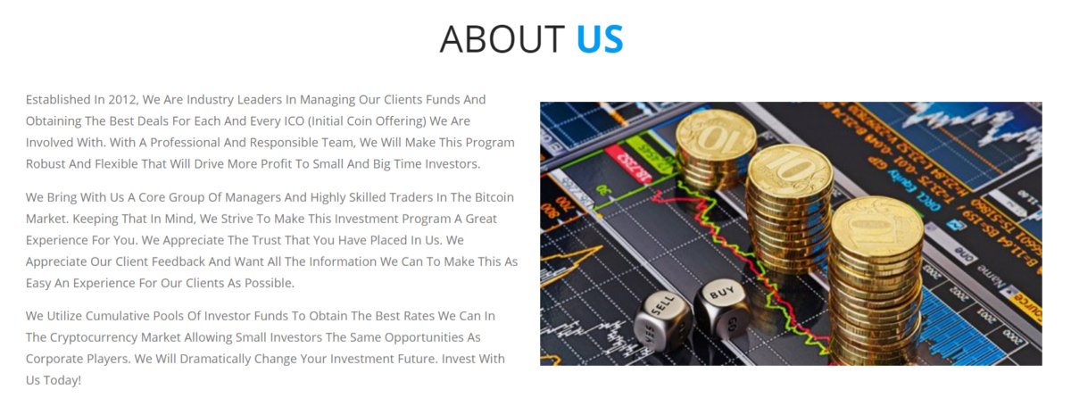 Comme bien souvent, l’équipe est aux abonnés absents et la partie « About us » est un kamoulox improbable, assorti d’illustrations d’allure aléatoire la plupart extraites de la catégorie « Finances et Loteries » d’une banque d’image quelconque.