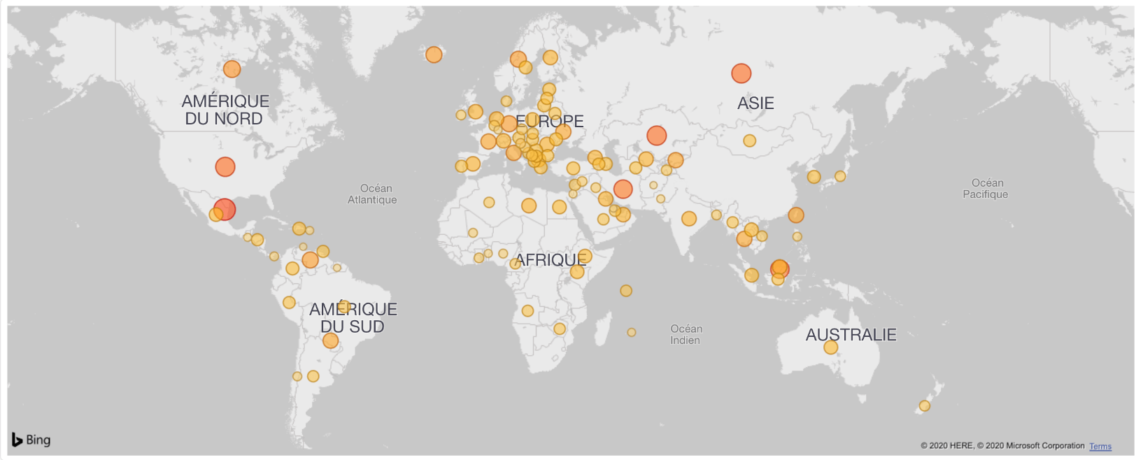 La carte de la répartition du minage de Bitcoin permet de visualiser la part mensuelle de chaque pays dans le hashrate total du réseau. Celle-ci a été publiée sur le site de l’université de Cambridge.