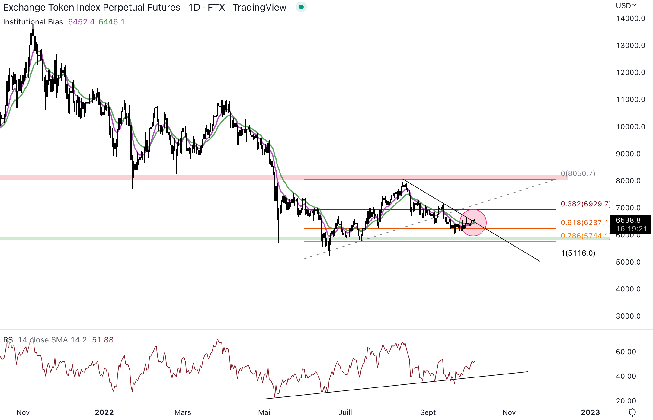 Rappelons que l’Exchange Token Index est un indice créé par la plateforme FTX qui regroupe les différents exchange token dans le but de pouvoir étudier le secteur. En 2022, le secteur se porte relativement bien dans un contexte de marché baissier. Voici le graphique :