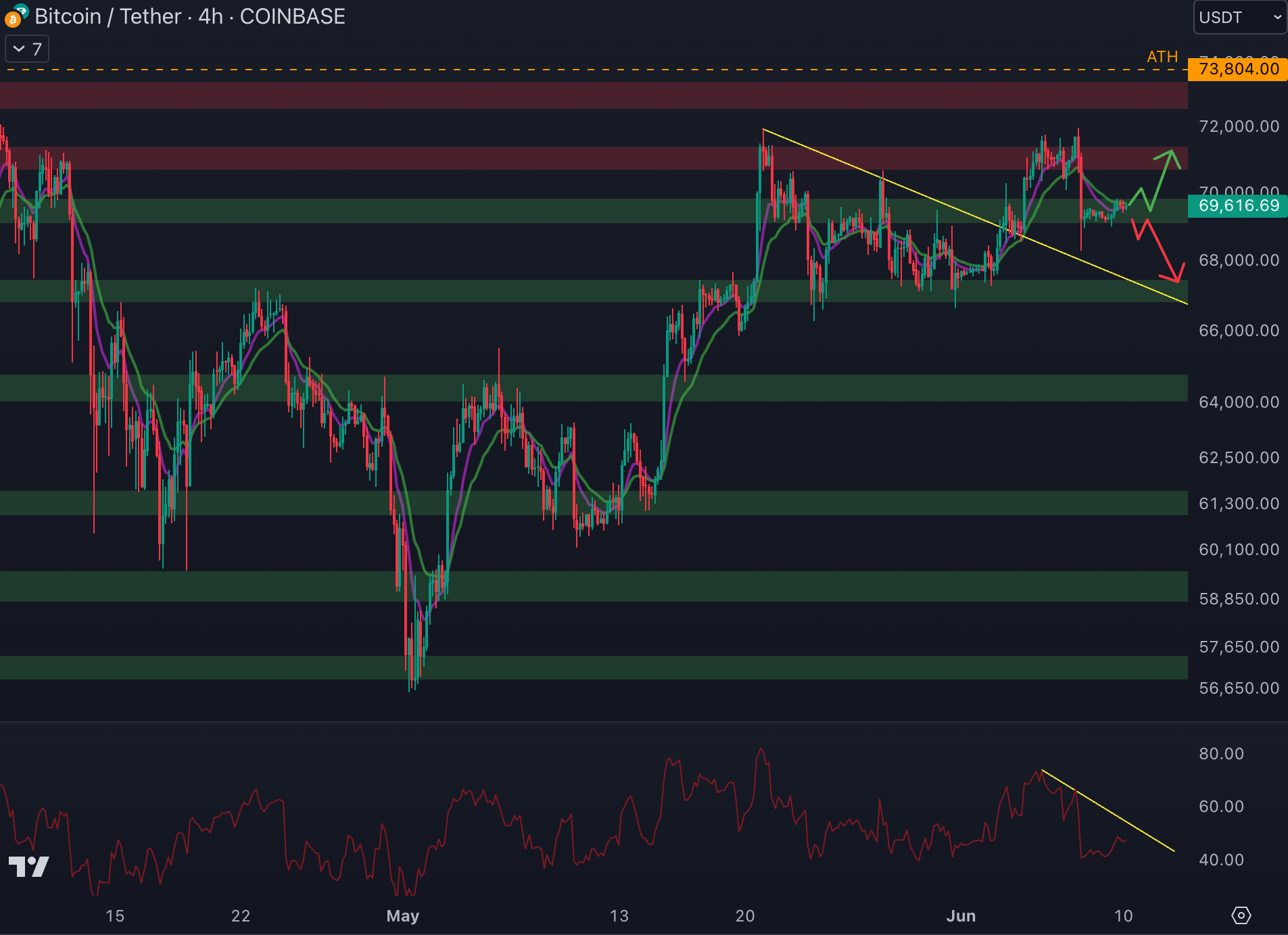 Bitcoin le 10 juin – 10ᵉ clôture d’affilée sous les 70 000 $ pour le BTC
