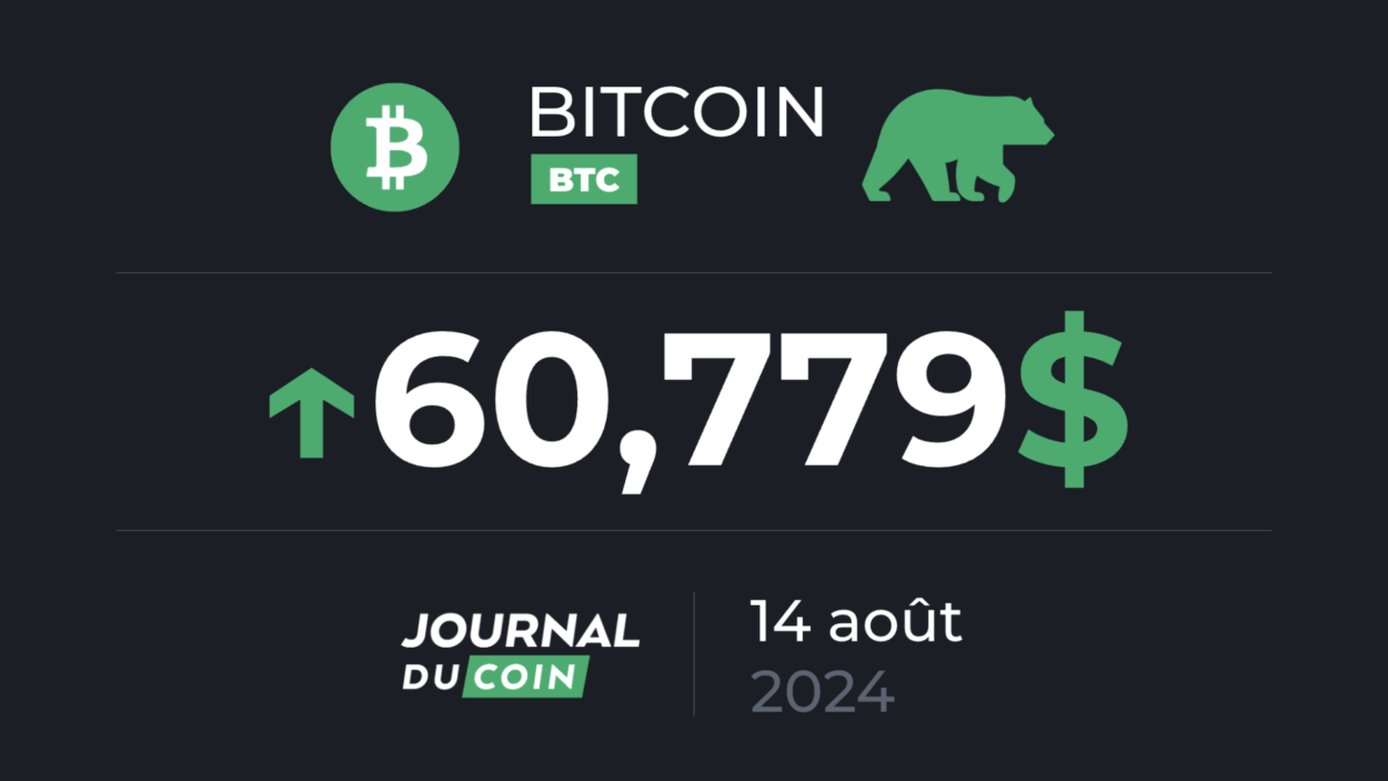 Depuis plusieurs mois, le cours du Bitcoin oscille autour des 60 000 $. Une fois de plus, les acheteurs parviennent à faire repasser le BTC au-delà des 60 000 $, et le cours grimpe de 2,5 % en 24 heures :