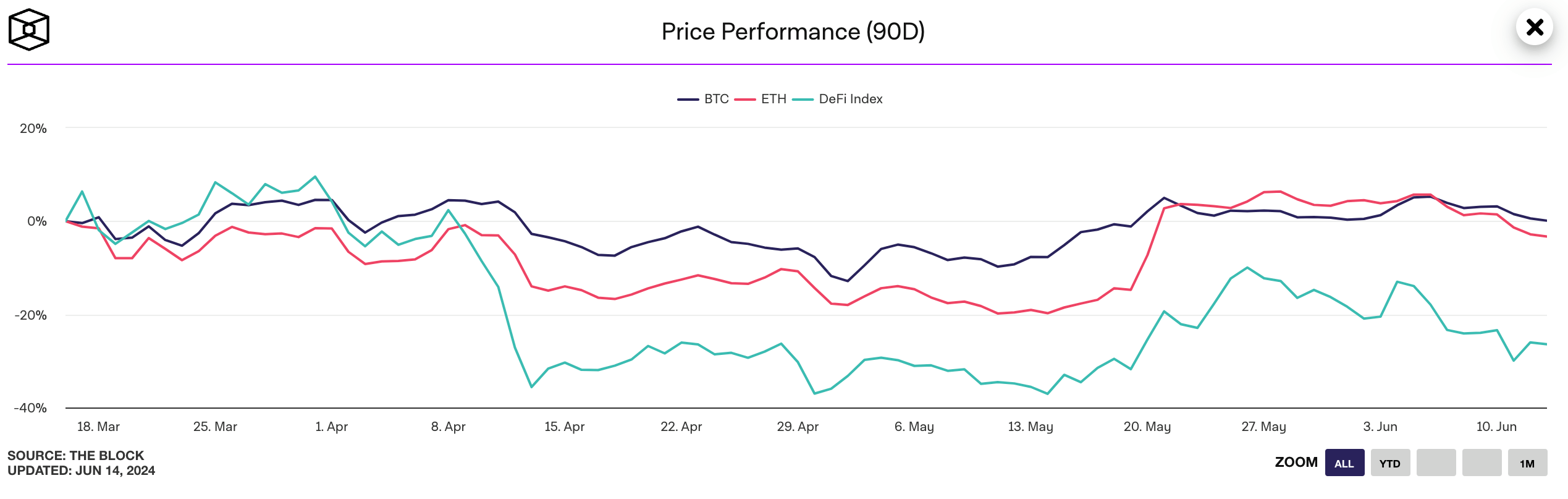 Néanmoins, après seulement quelques jours, le BTC est redevenu plus fort que le prince des cryptomonnaies. Concrètement, cela fait trois mois que le BTC stagne, et Ethereum, lui, affiche une baisse de plus de 3 %. De son côté, le secteur de la DeFi (UNI, AAVE, LDO, MKR, CRV, LRC, COMP, CVX, BAL, YEARN) reste relativement fragile et sous-performe les deux plus grosses capitalisations des cryptomonnaies.