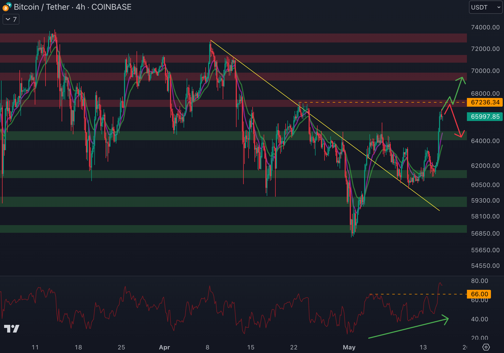 Le cours du Bitcoin se rapproche de la résistance à 67 000 $