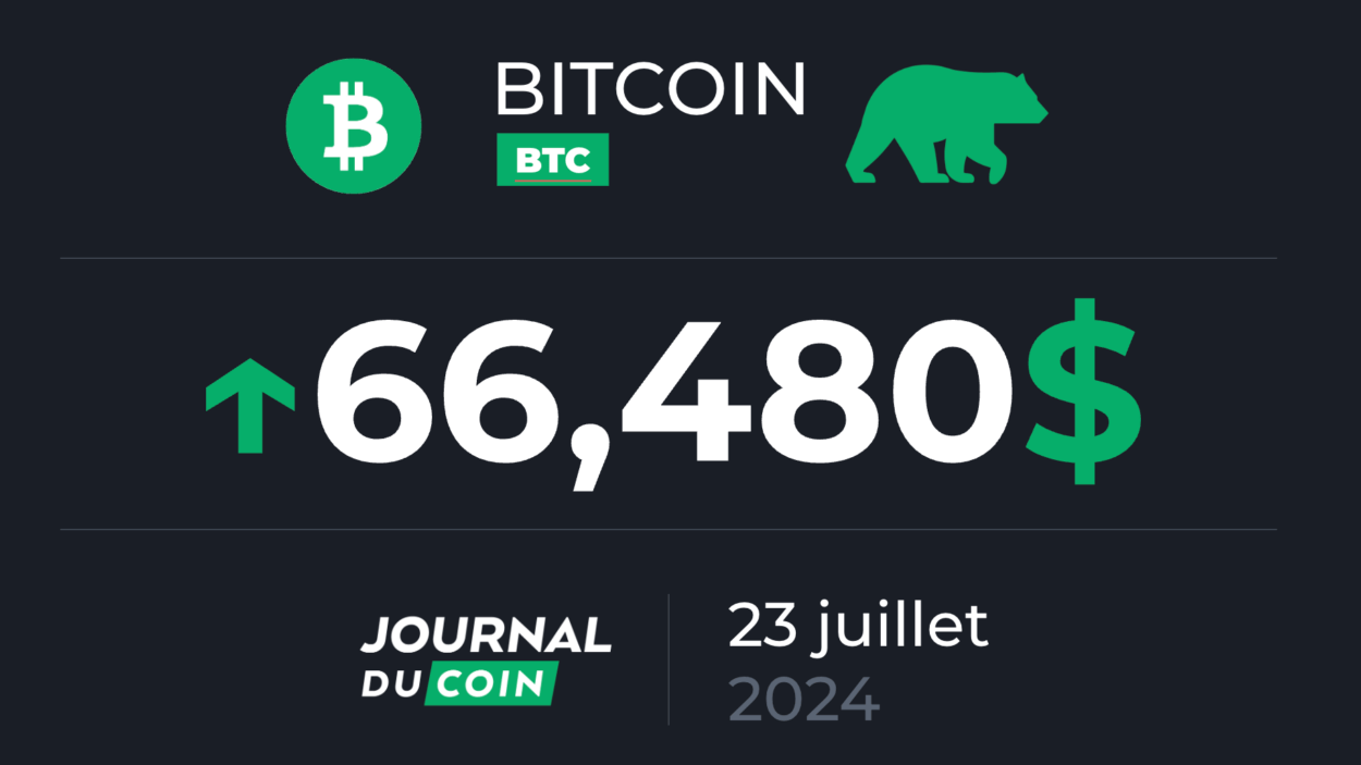 Malgré la bonne nouvelle concernant les ETF Ethereum au comptant, il faudra attendre avant de revoir le cours du Bitcoin à 70 000 $. En effet, le cours a légèrement chuté dans la nuit, affichant 1,4 % de baisse sur 24 heures :