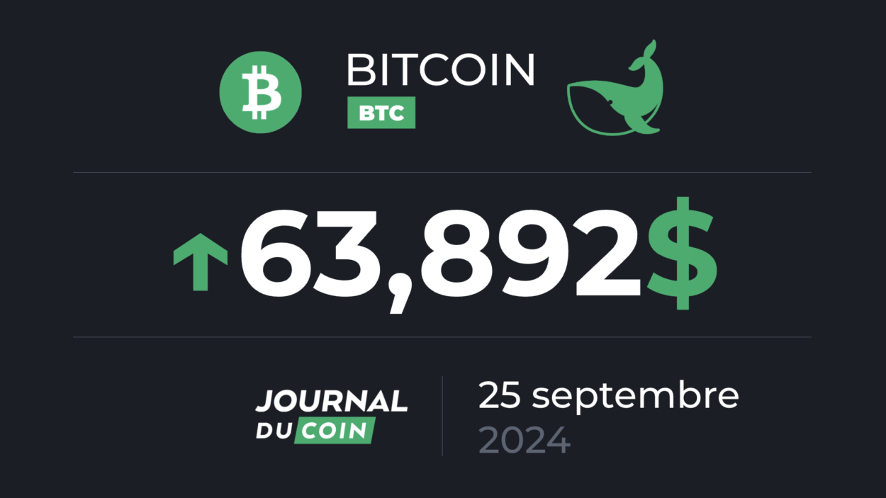 L’ascension continue pour le cours du Bitcoin qui a frôlé les 65 000 $ cette nuit. Grâce à la hausse qui a débuté en fin de journée, le BTC grimpe d’1,4 % en 24 heures :