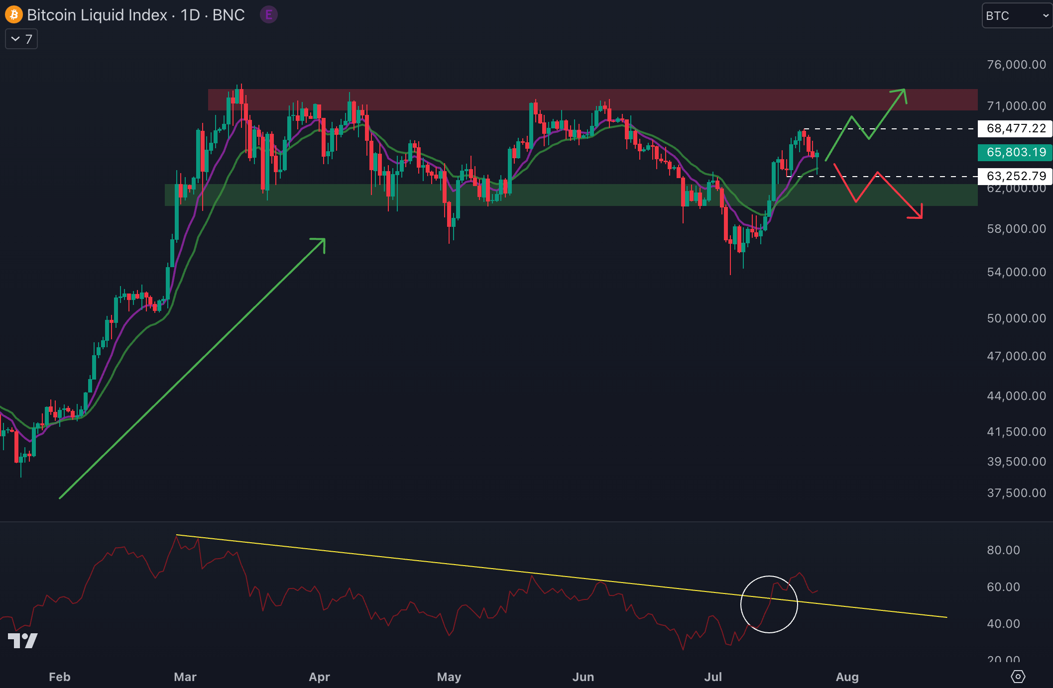 - conserver le dernier creux à 63 250 $