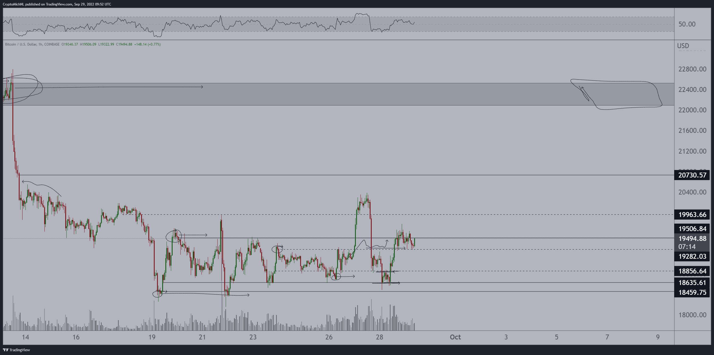 Le prix du Bitcoin chute jusqu’aux 18 863 $ sur Bitfinex aujourd’hui, 29 septembre 2022. La cryptomonnaie se négocie aux 19 358 $ au moment de la rédaction de cet article. Les marchés ont droit actuellement à un doji.