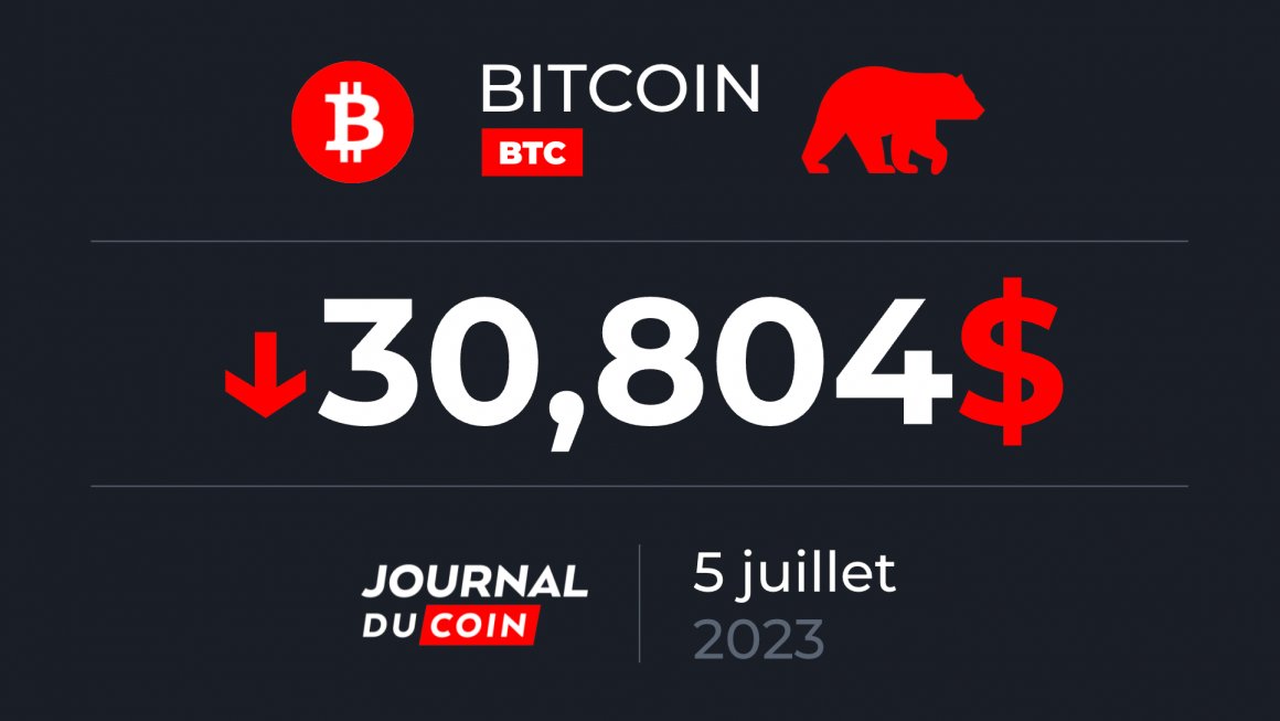 Malgré la tentative de rebond, les vendeurs ont réussi à ramener le cours proche de la zone de support située autour de 30 500 $ :
