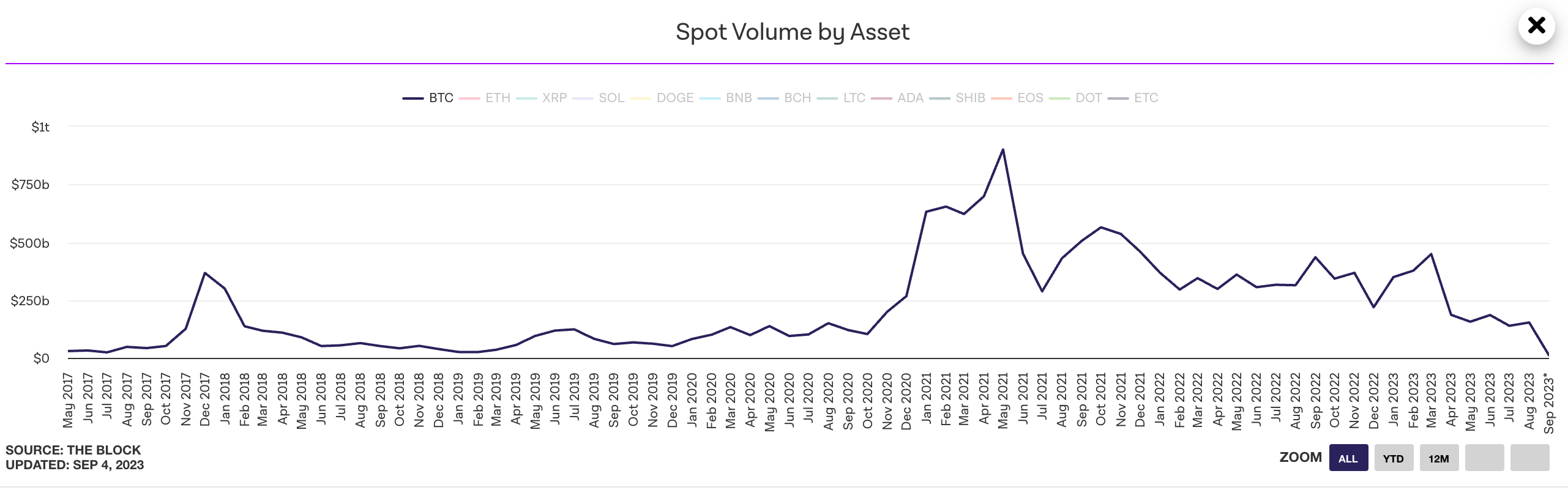 Bitcoin le 5 septembre – Les volumes spot du BTC sont en chute libre