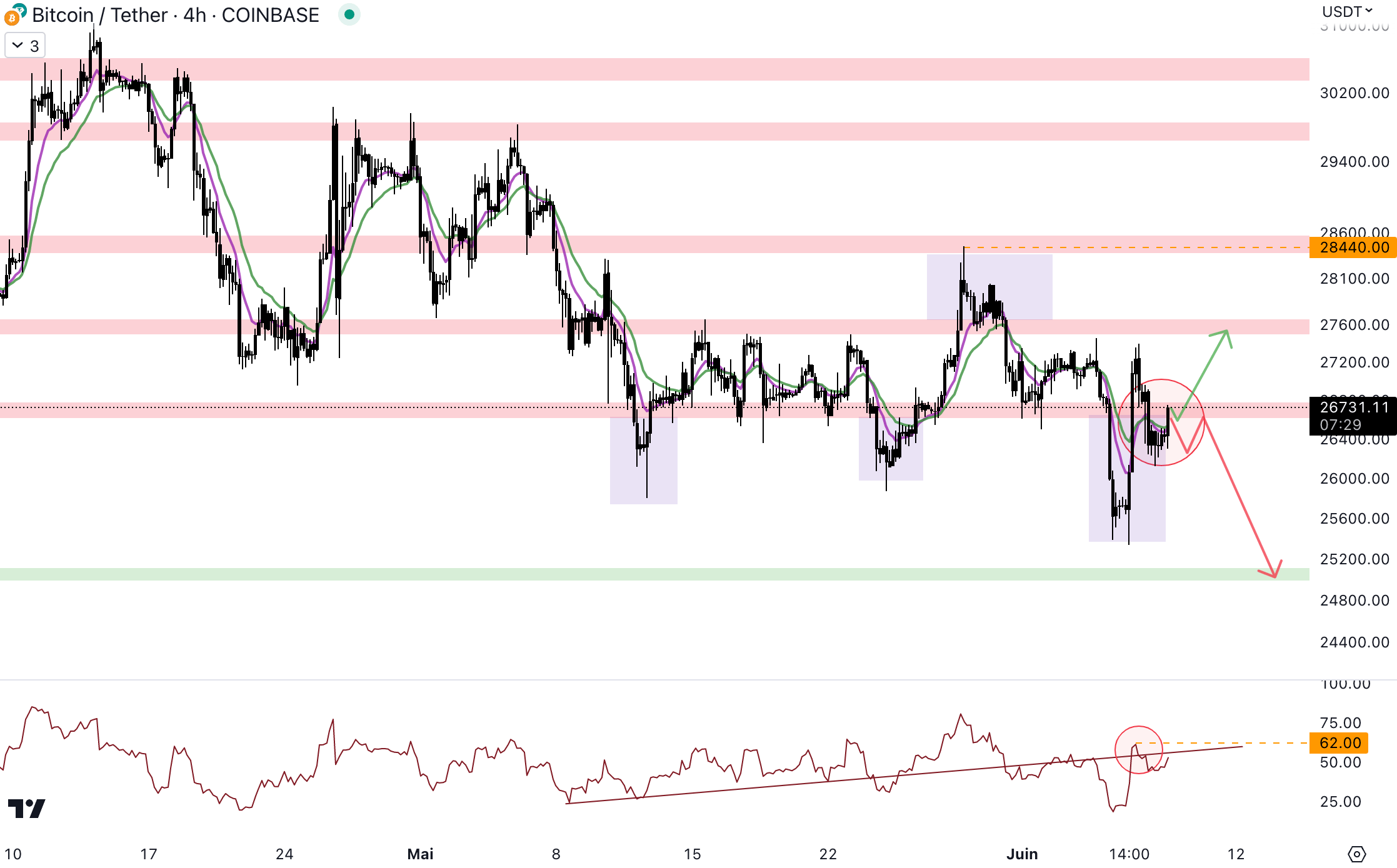 Le Bitcoin évolue une nouvelle fois au niveau de la zone à 26 700 $ :