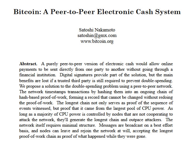Tout commence par le White Paper de Bitcoin