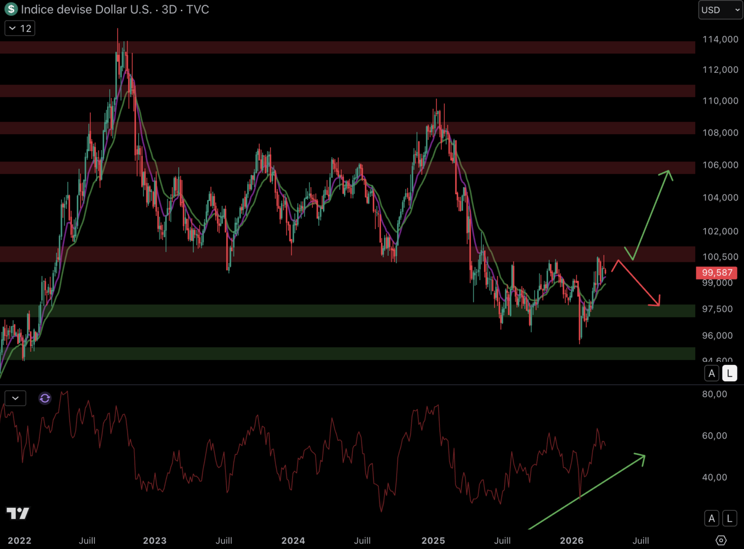 Graphique du dollar index (3D) – Inscrivez-vous à Trading View en utilisant notre lien d’affiliation.