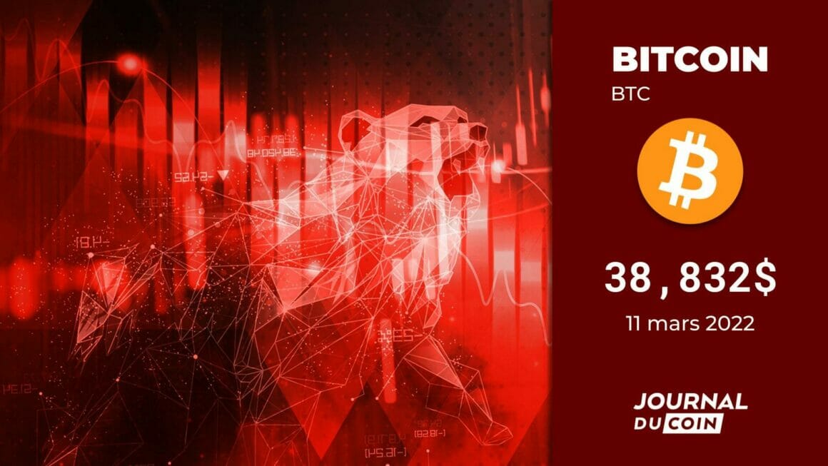 Le prix du bitcoin reprend temporairement les 40 000 $ aujourd’hui, 11 mars 2022. Bitcoin est en effet monté jusqu’aux environs des 40 230 $ sur Bitfinex, avant de repasser sous les 40 000 $, puis sous les 39 000 $. Bitcoin se négocie à 38 832 $ au moment de la rédaction de cet article, et enregistre actuellement une perte quotidienne de 1,28 %.
