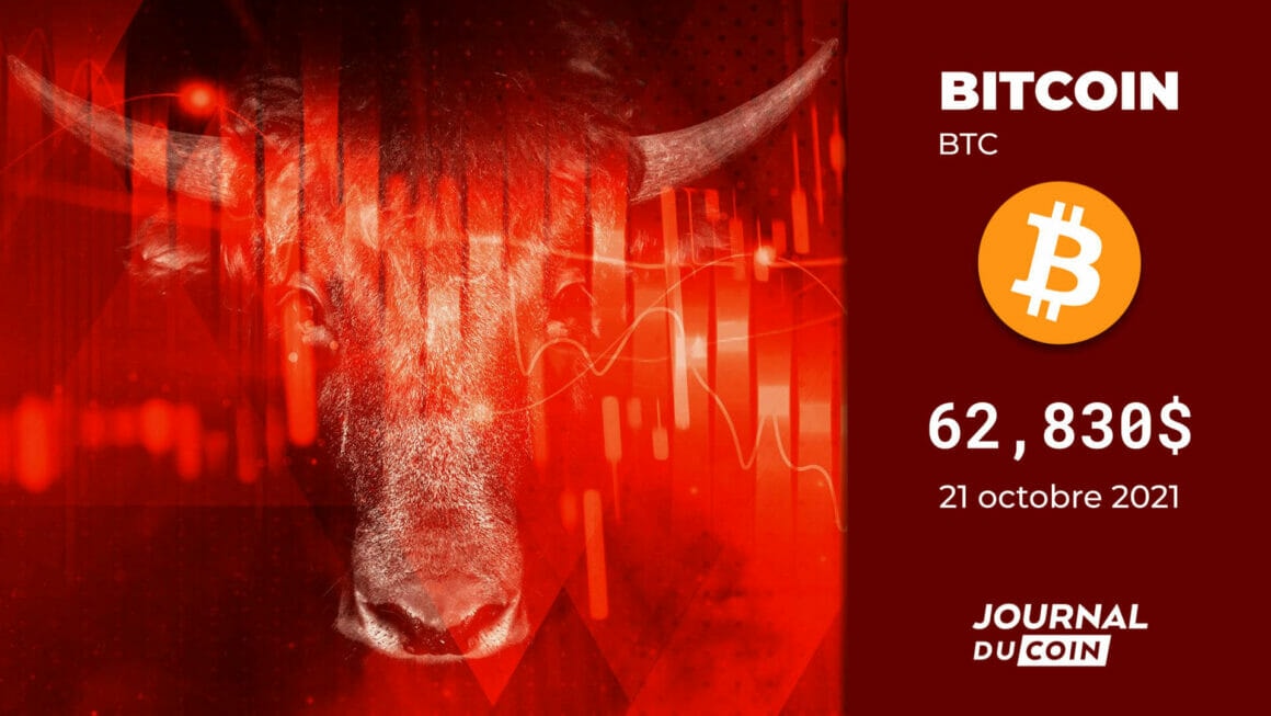 Bitcoin chute jusqu’aux 62 100 $ sur Bitfinex aujourd’hui, 21 octobre 2021. Il se négocie à 62 830 $ au moment de la rédaction de cet article, et enregistre actuellement une perte quotidienne de 5,25 %. Bitcoin subit une correction après avoir atteint un nouvel ATH près des 67 000 $ hier, 20 octobre 2021.