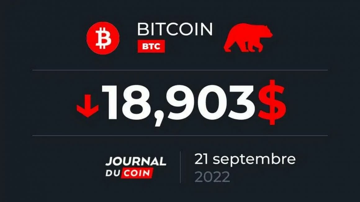 Le prix du Bitcoin monte jusqu’aux 19 888 $ sur Bitfinex aujourd’hui, 21 septembre 2022, avant de perdre de nouveau les 19 000 $. La cryptomonnaie se négocie à 18 903 $ au moment de la rédaction de cet article. Les marchés ont droit actuellement à un doji sur une base journalière.