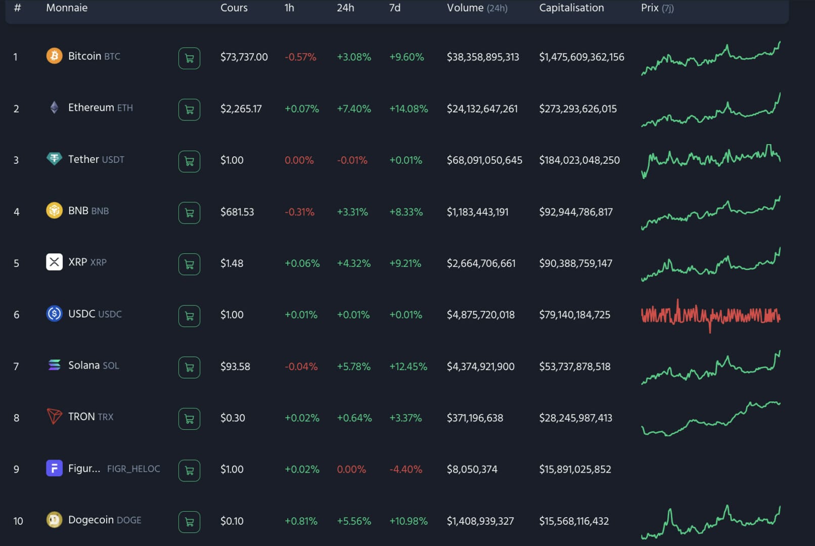 Ce matin, le Bitcoin a grimpé de 3,7 %, franchissant la barre symbolique des 74 400$. Mais il n’est pas le seul à faire le spectacle. Dans son sillage, Ethereum (ETH) a bondi de 6,9 %, tandis que Solana (SOL) s’est offert une hausse de 6,1 %.