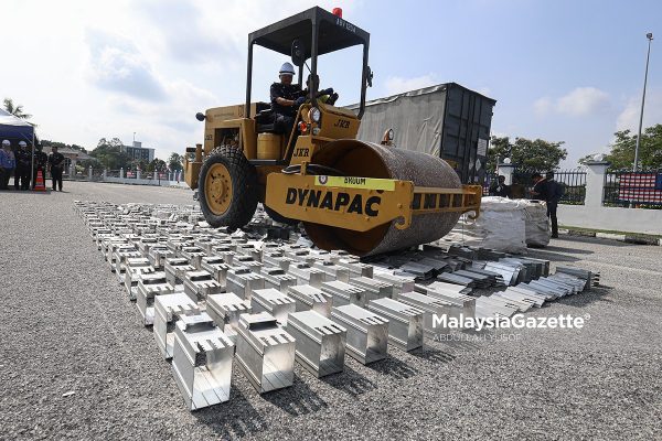 - La police de Perak Tengah ( une région de Malaisie) a utilisé un rouleau compresseur pour écraser les machines, suite à une décision de justice.