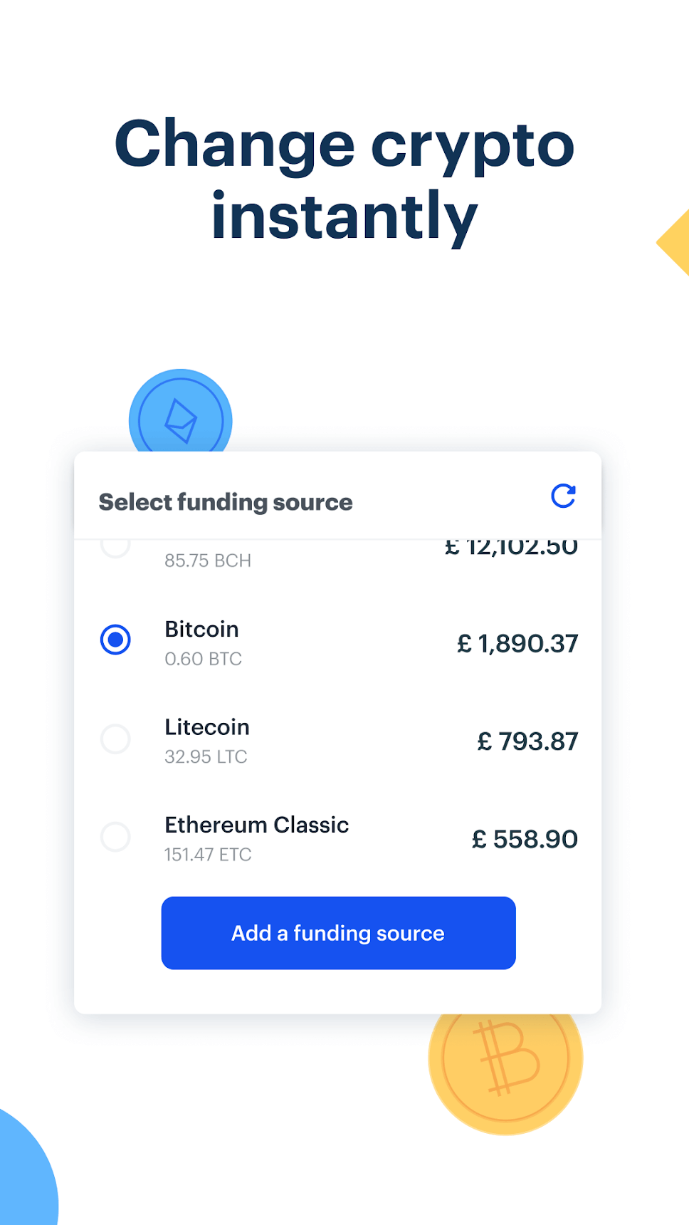 Comme l’illustre la capture d’écran ci-contre, il est possible de choisir à partir de quelles cryptomonnaies se feront vos achats, parmi toutes celles disponibles sur Coinbase.