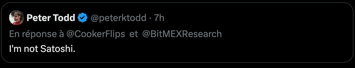 « Je ne suis pas Satoshi » : Peter Todd dément formellement être le créateur de Bitcoin