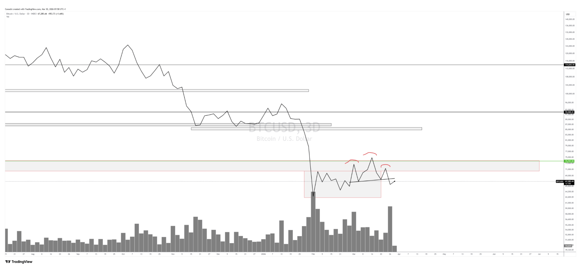 Le roi des cryptos n’est pas au mieux de sa forme. Le Bitcoin nous dessine actuellement un pattern d’épaule-tête-épaule. Même si cette figure est techniquement censée apparaître après une tendance haussière marquée, elle n’en reste pas moins un signal de retournement qui s’ajoute à la pile des arguments baissiers. Cara est formel, sans un rebond immédiat et puissant, la structure reste fragile et invite à la plus grande vigilance :