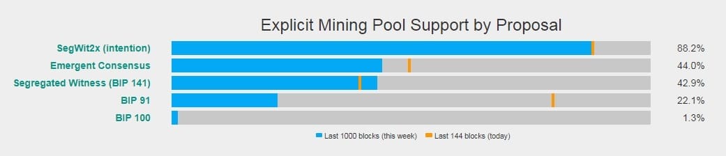 Ci-dessous l’acceptation du Segwit2x au moment de la rédaction de l’article :
