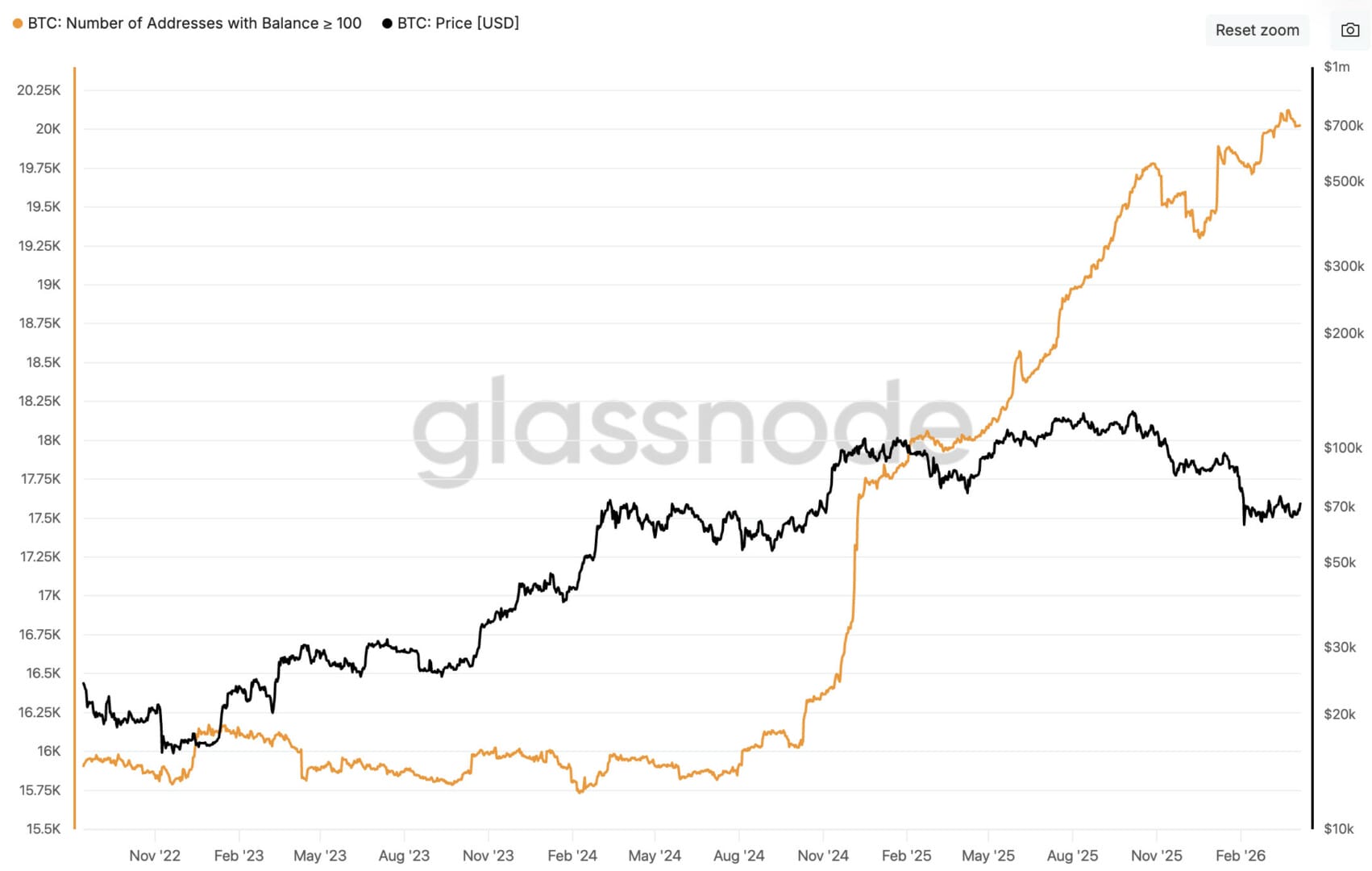Les entités de plus de 100 BTC continuent de soutenir le roi des cryptomonnaies