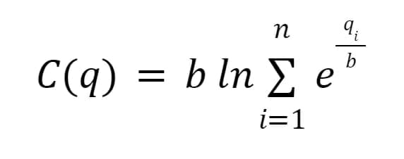 - La fonction de coût fixe le montant total des actifs misés sur le marché, où C(q) est la subvention maximale du market maker ;