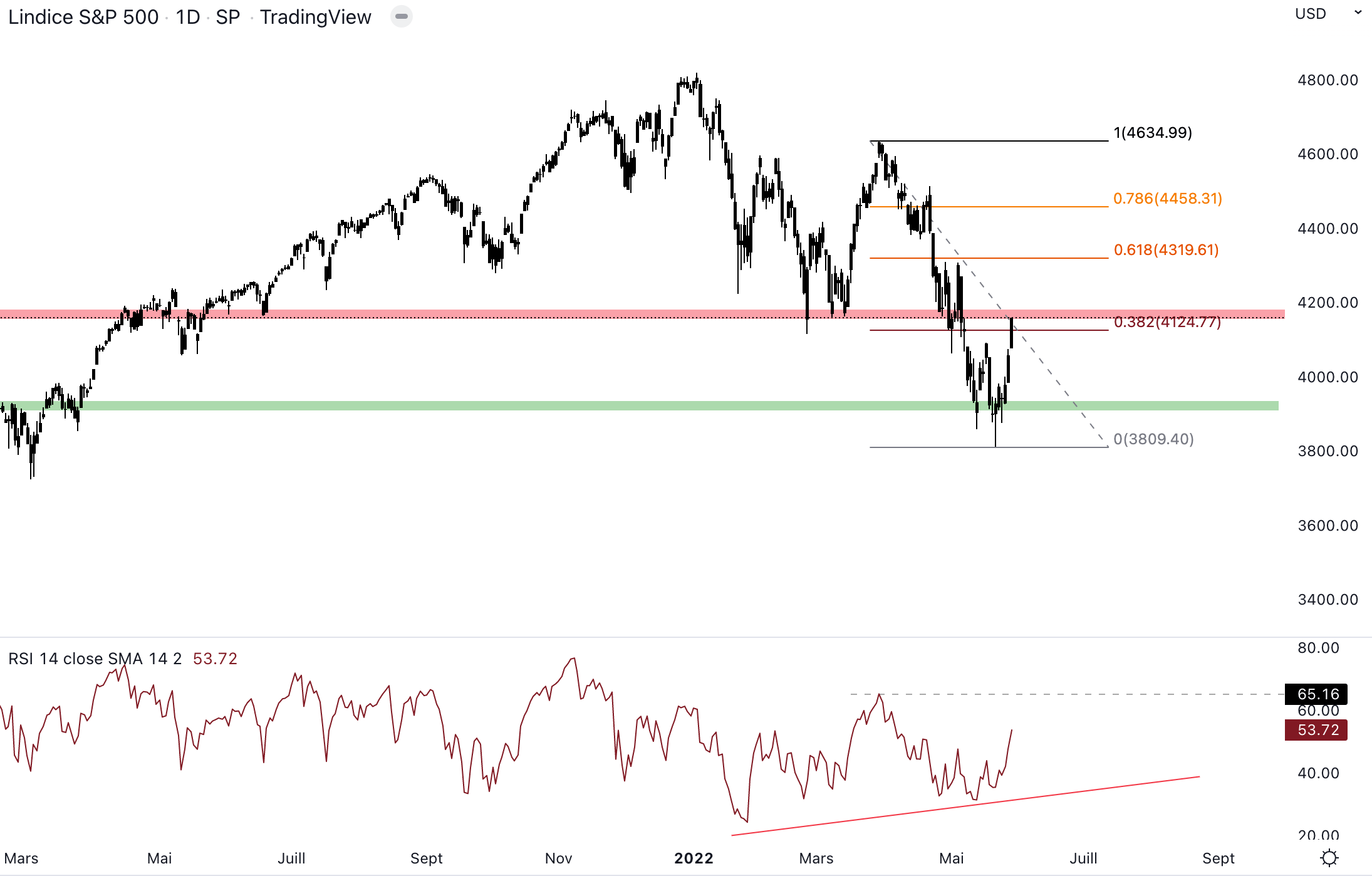 Le S&P 500 a trouvé des acheteurs au niveau de 3 900 $. Pour le moment la dynamique reste baissière, mais les acheteurs auront l’occasion de changer la dynamique :