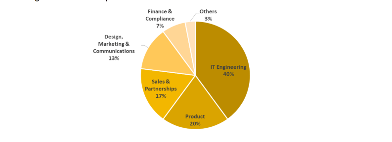 Le dernier rapport d’emploi CFTE Blockchain montre que les 54 plus grandes licornes de la Blockchain emploient 32.500 personnes dans le monde entier, avec la plus grande proportion (40%) travaillant dans l’ingénierie informatique.