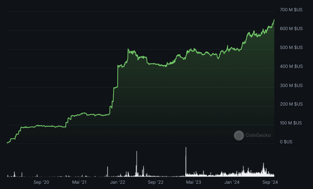 Les volumes d'échange quotidiens montrent que le jeton a tendance à être de plus en plus utilisé. En septembre 2024, ils ont oscillé entre 3 et 26 millions de dollars.