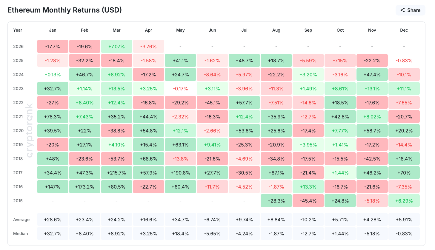 Après six mois dans le rouge, mars se termine dans le positif pour Ethereum (+7 %)