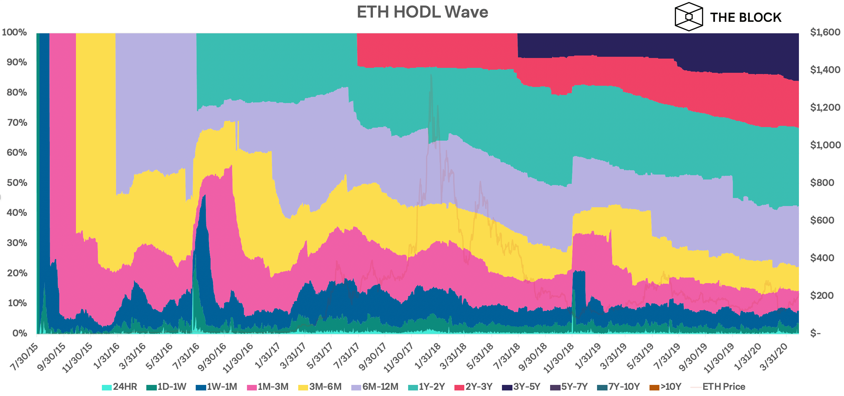 En effet, selon les données de Glassnode, 77 % des ETH qui ne sont pas stockés dans un smart contract n’ont pas été déplacés depuis 6 mois, et 31,6 % n’ont pas bougé au cours des deux dernières années.