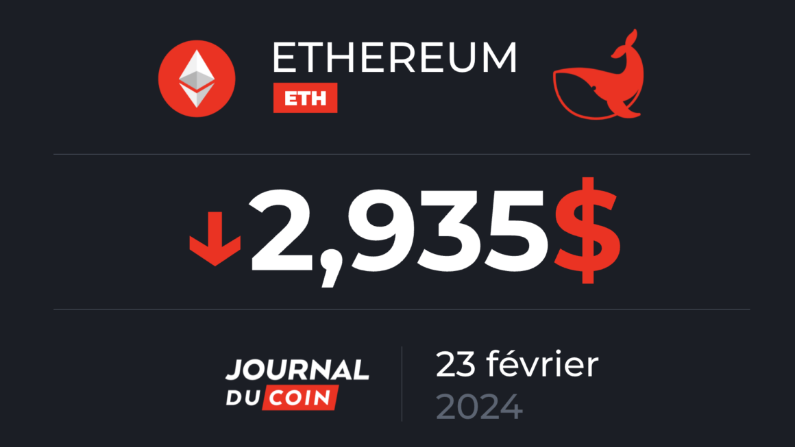 Le cours d’Ethereum chute de plus de 2 % en 24 heures