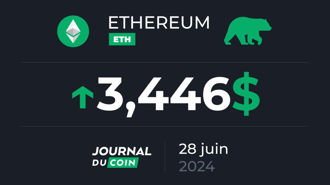 Ethereum (ETH) tente de revenir au-delà des 3 500 $. Le cours d’Ethereum est en hausse d’1,8 % en 24 heures et il s’échange autour de 3 400 $ :