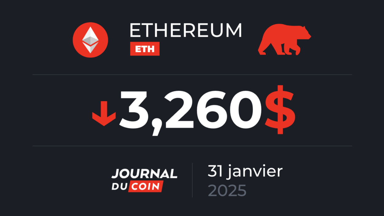 ETH ne se réveille toujours pas, le cours d’Ethereum chute de 4,7 % en une semaine et de 3 % en un mois face au dollar :