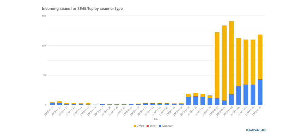Augmentation soudaine des scans du port 8545 pour détecter les ethers vulnérables – Source : Troy Mursch sur ZDNet