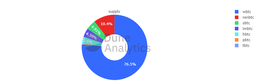 On notera l’extrême dominance des WBTC. Ils représentent 15 521 BTC, soit 76,5 % du marché.
