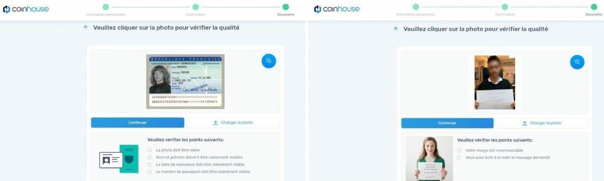 - Prendre une photo selfie de vous tenant un papier sur lequel vous aurez écrit le message « Je veux acheter des cryptoactifs avec Coinhouse.com ».